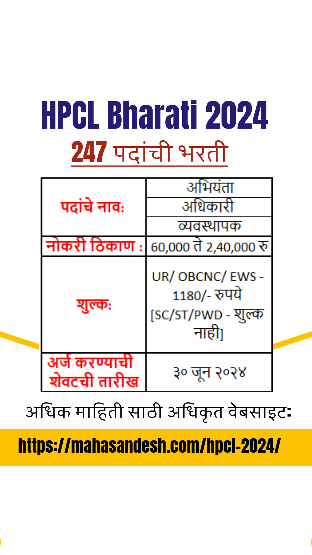 अर्ज करण्याची शेवटची तारीख – दिनांक ३० जून २०२४