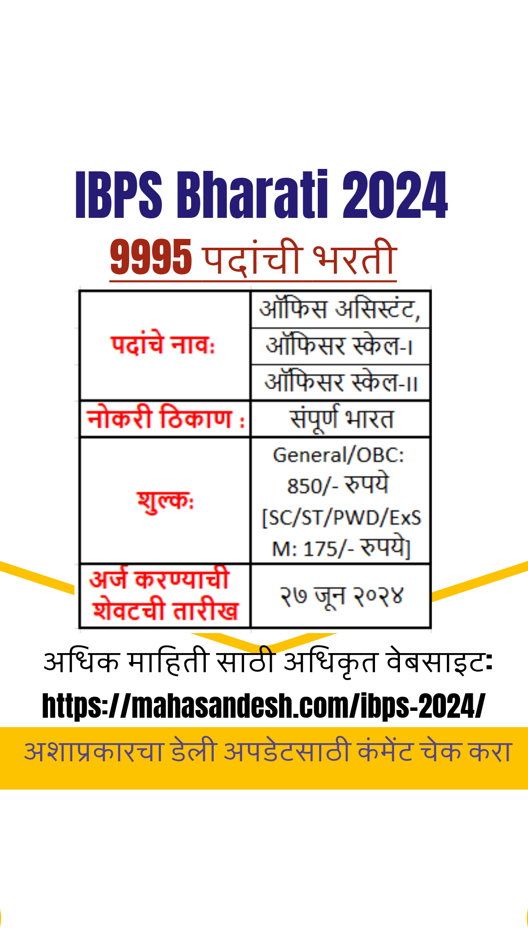 अर्ज करण्याची शेवटची तारीख २९ जून २०२४